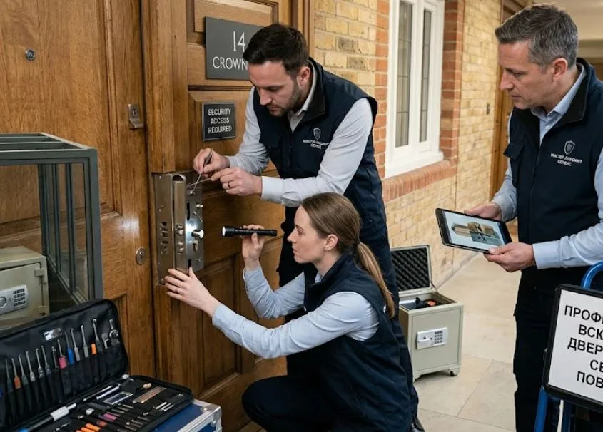 Есть ещё метод вскрытия через технологические отверстия и работа с запорными механизмами засовов — но это детали, которые мастер подбирает индивидуально. Главное: профессионал всегда начинает с наименее разрушительного метода и переходит к более радикальным только тогда, когда другого выхода нет.
