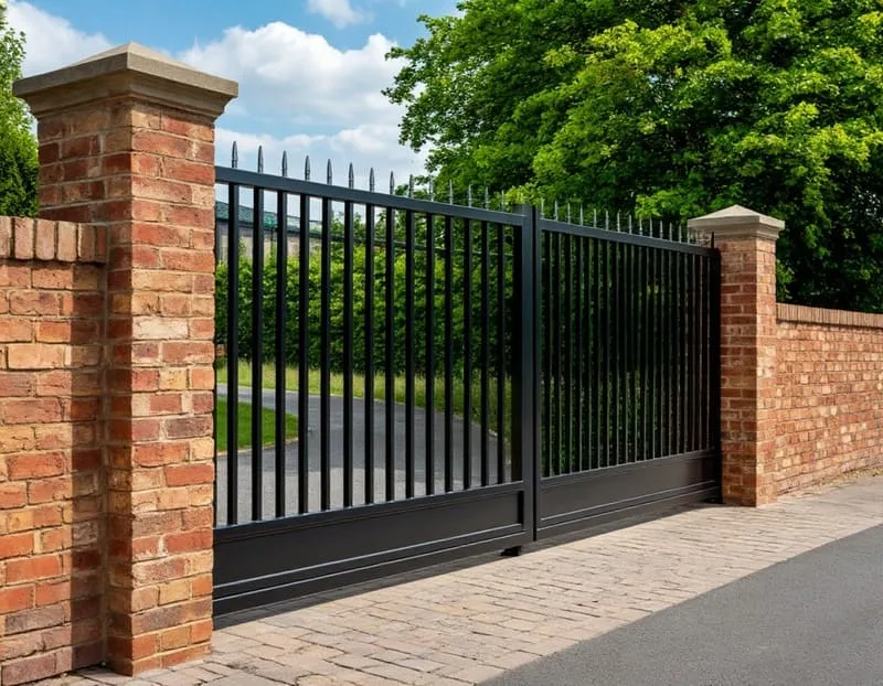 | Подвесные | Створка подвешена на верхней балке и движется по ней на роликовых каретках. | Очень надёжная и устойчивая конструкция. Не боится снежных заносов. | Верхняя балка ограничивает высоту въезда (например, для высокого грузового транспорта). Менее эстетичны. | Для ограждённых территорий, где ограничение по высоте не критично (внутренние проезды, промышленные объекты). |