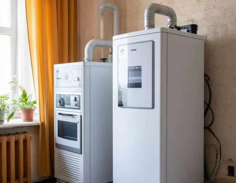 - Минусы: выше начальная стоимость (котёл + бойлер), требует больше места.