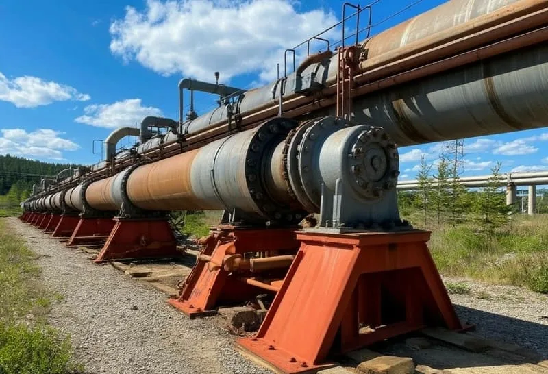 Опоры воспринимают различные виды нагрузок: вертикальные (от собственного веса), осевые (из-за давления и теплового расширения), поперечные (от ветра или сейсмических воздействий) и изгибающие (в местах поворота).