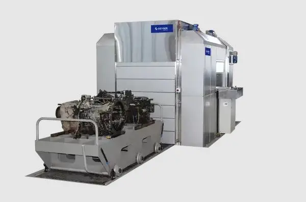 Процесс помывки выполняется с помощью биоразлагаемого чистящего средства. Его нагревают до температуры в пределах от 65 до 80 градусов. Подаётся средство через форсунки, закреплённые на П-образной конструкции — портале. Форсунки размещены так, чтобы раствор подавался под двумя разными углами. Это позволяет направлять раствор на все поверхности очищаемого изделия. Дополнительные форсунки размещены на специальной перекладине. Она находится под омываемой деталью. Перекладина перемещается совместно с порталом.