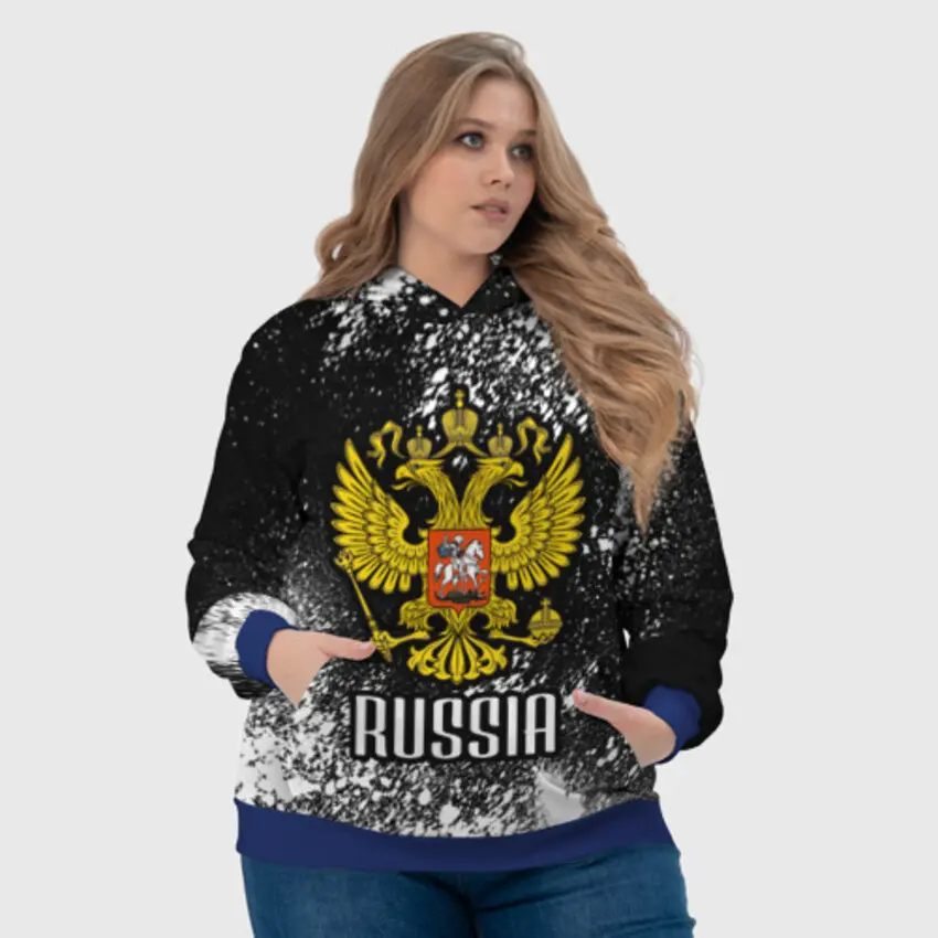 Толстовка с патриотичным принтом сочетает в себе стиль, комфорт и патриотизм. Это также может быть отличным подарком для любительниц символики России и модных вещей.