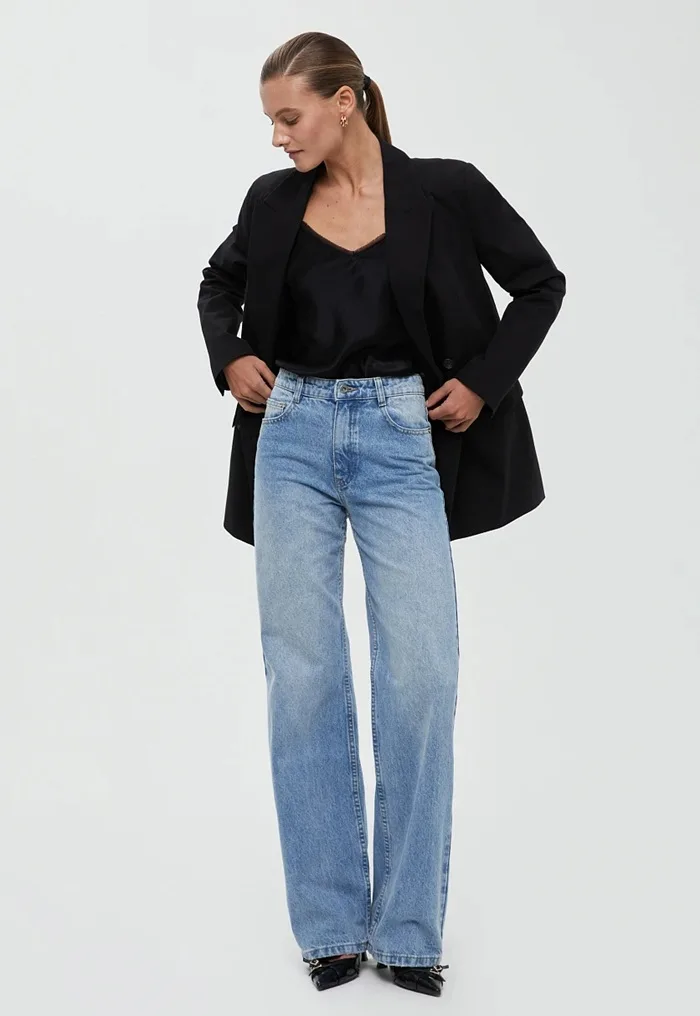 Классические синие джинсы подойдут как для учебы, так и для прогулки, что делает их универсальным вариантом в качестве повседневной одежды.