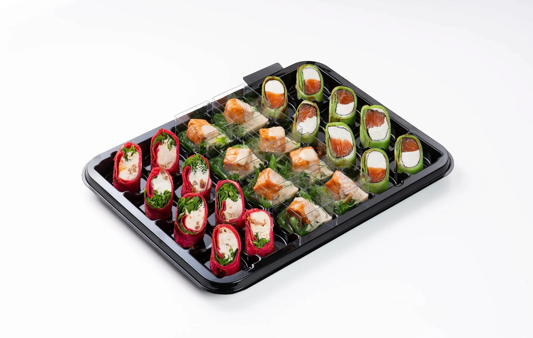 - Тип закусок. Сочетайте «лёгкие» (овощные, рыбные) и «сытные» (мясные, сырные, пастообразные) позиции в пропорции 50/50 или 40/60.