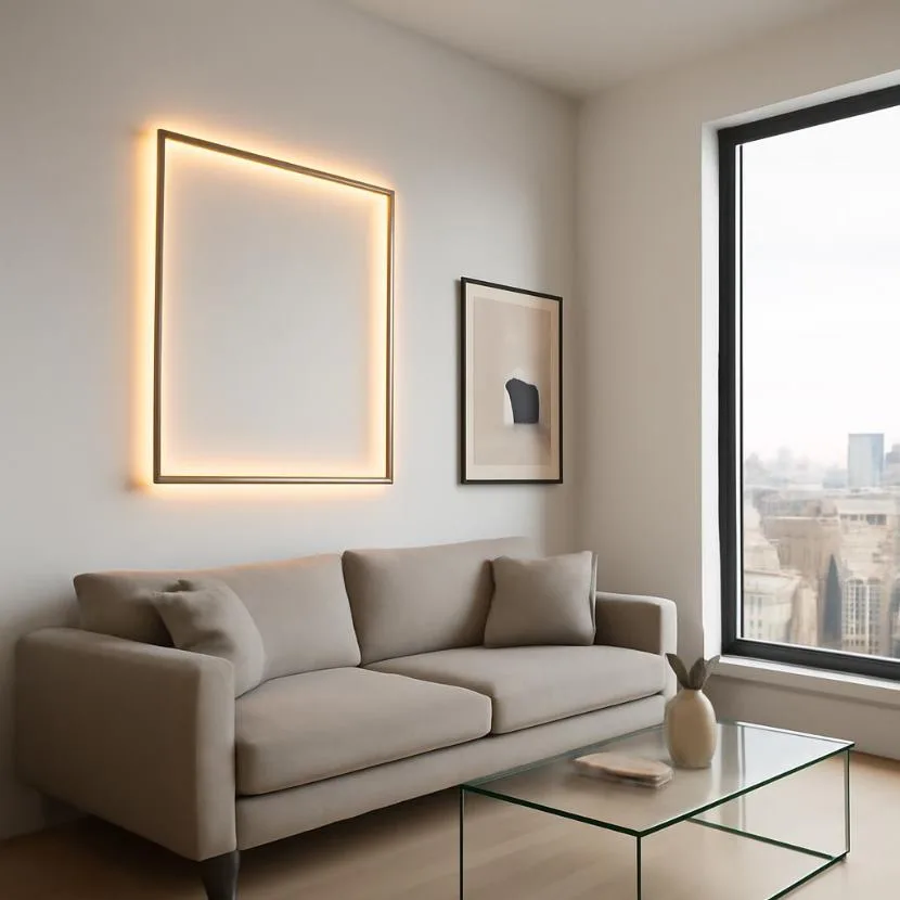 Фреймлайты превращают обычную стену в динамичный элемент, подчеркивающий стиль помещения.
