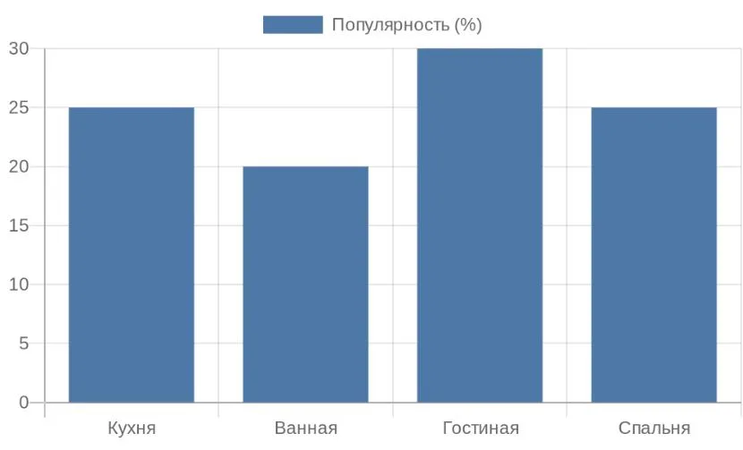 Диаграмма показывает распределение предпочтений среди российских пользователей, основанное на опросах мебельных сетей. Гостиная лидирует благодаря универсальности. Такой подход позволяет рационально спланировать покупку, учитывая бюджет и стиль дома.