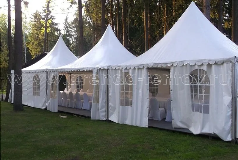 - Рассмотрите стиль и назначение мероприятия. Для свадеб или юбилейных торжеств выбирайте элегантные тканевые шатры с декором. Для корпоративных или выставочных мероприятий подойдут более строгие и вместительные конструкции.