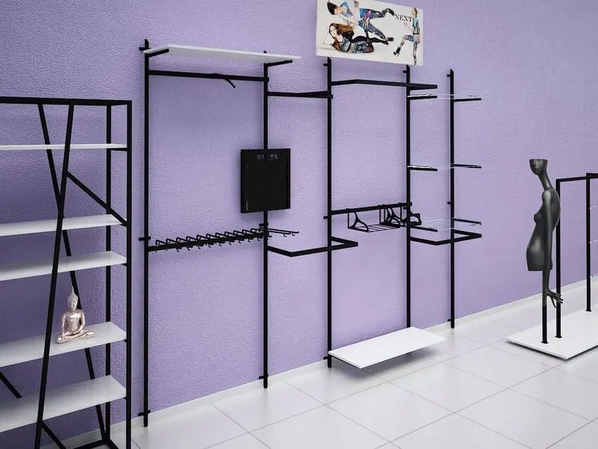 - Многофункциональность. Эта система предлагает различные элементы, такие как полки, штанги, стойки, плоскости, освещение и другие, что позволяет создавать разнообразные дизайнерские решения.