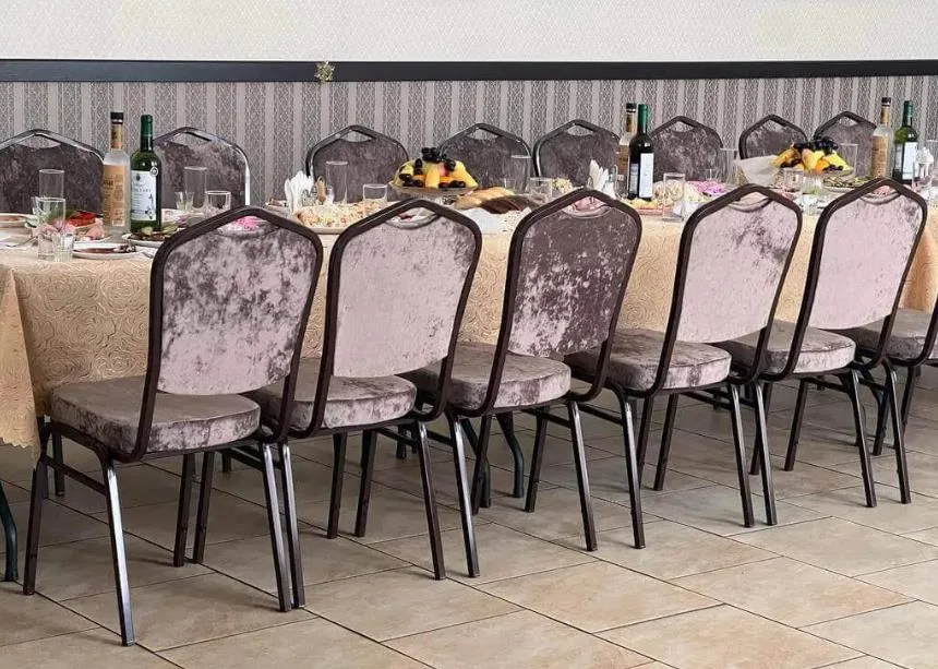 - Сочетаемость с текстилем — столы должны подходить под скатерти, чехлы, фуршетные юбки.