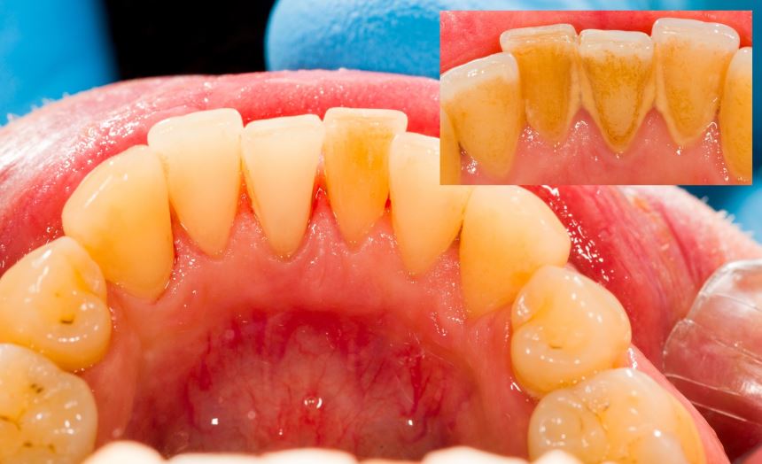 Зубной камень — это минерализованная форма зубного налета, которая образуется из пищевых остатков, слюны и бактерий. По сути, это каменные отложения на зубах, которые могут быть желтого, коричневого или даже черного цвета. Они образуются обычно на задних зубах, но могут распространиться и на другие зоны. Камень может быть как над деснами (наддесневый), так и под деснами (поддесневый), что делает его еще опаснее.