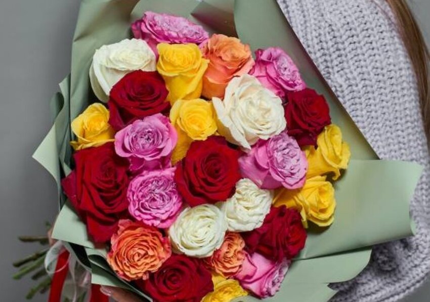 Если не хочется задумываться о цветовом значении букета, можно заказать у флориста микс оттенков. Одинаково хорошо смотрятся композиции пёстрых или нюдовых тонов.