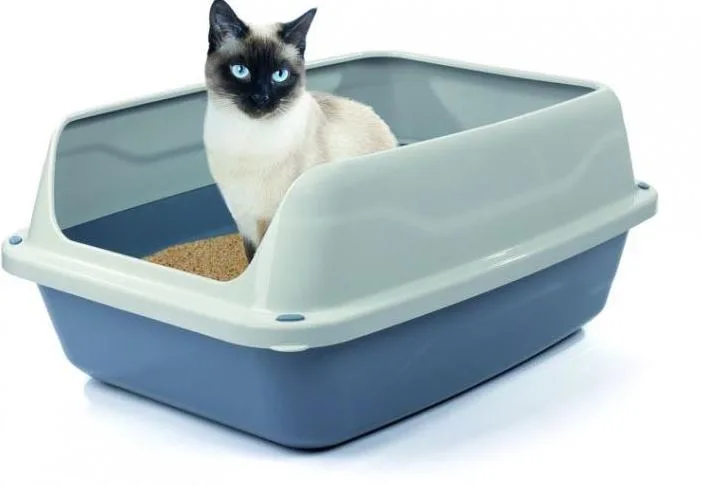 Это базовая модель — пластиковая емкость с бортами. Такой лоток стоит выбирать для кошек, которые любят активно копать. Открытое пространство не сковывает движения, животное может рыть с комфортом, не упираясь в стенки и крышку. Также открытый лоток подходит для крупных кошек и для тех, кто боится замкнутых пространств. Плюсы: низкая цена, простота мытья. Минусы: запах распространяется, наполнитель может разлетаться.